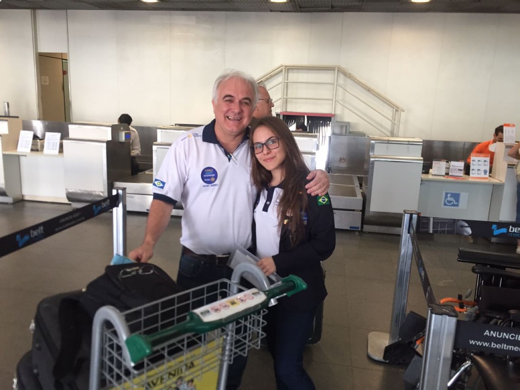No embarque, ela esteve acompanhada dos familiares e do Oficial do clube do PIJ, co. Mauro Berres.