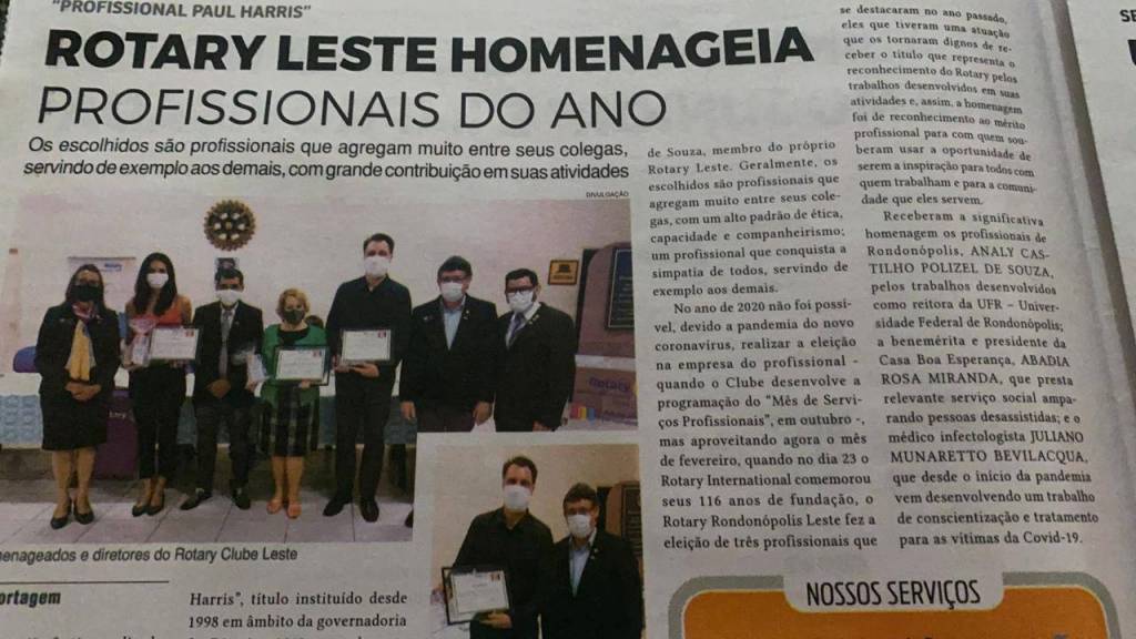 No mesmo dia durante a noite, participou de uma Assembleia com o Rotary Club de Rondonópolis Leste, Presidente Milton Euzébio Amâncio, em que vários profissionais foram homenageados com Título Paul Harris, por serem inspiração em seu trabalho e comunidade.