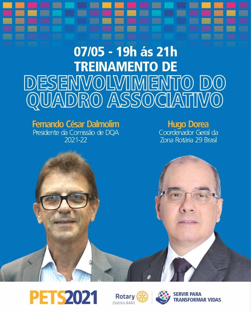 TREINAMENTO – PETS 2021 do DISTRITO 4440 / 07 de maio de 2021: sexta-feira / 3º DIA : DQA - Desenvolvimento do Quadro Associativo