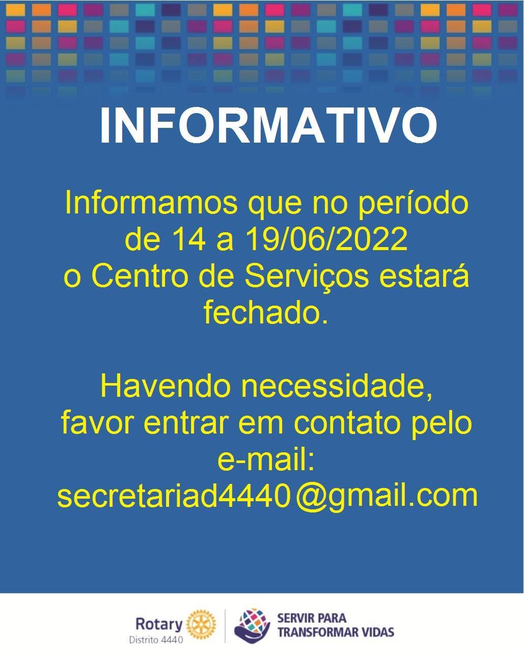 INFORMATIVO - CENTRO DE SERVIÇOS ESTARÁ FECHADO