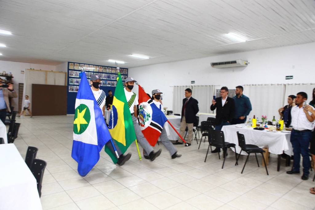 5) Com a palavra o Diretor de Protocolo que convidou o Tenente Mario Roberto Vieira de Souza para coordenar o ato de entrada das bandeiras, seguido da entoação do Hino Nacional Brasileiro;