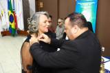 11) Na sequencia, foi convidado a frente da mesa a esposa do Presidente eleito Adão Domingues de Souza (Adriana Ribeiro de Queiroz) que recebeu do Presidente Girleno Gomes Moreira flores, simbolizando a familia no ambito rotário.