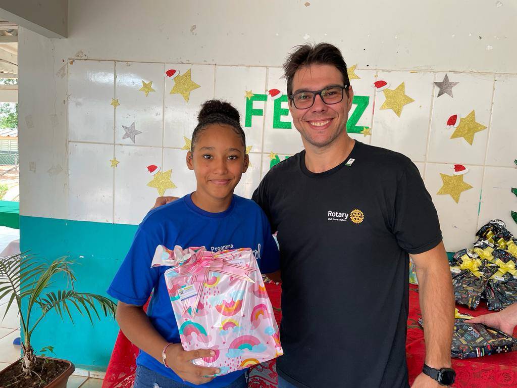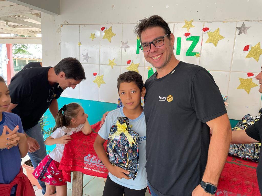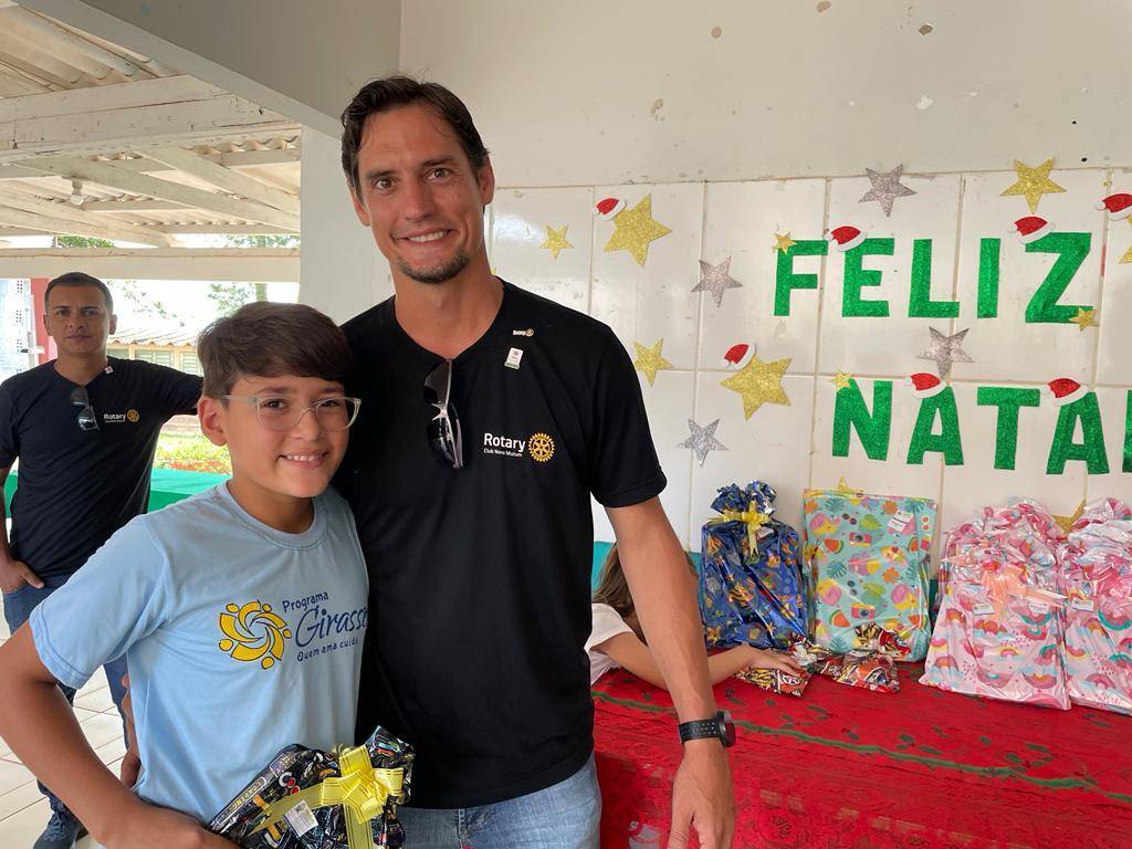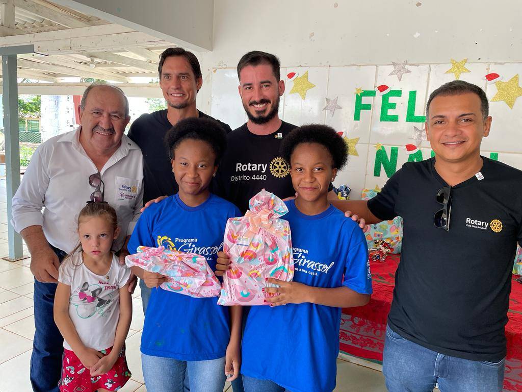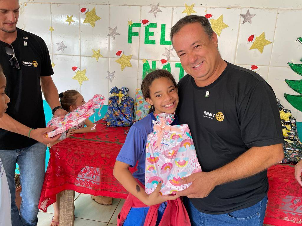 Nesta segunda 12 de dezembro o Governador Felício José esteve realizando a visita oficial ao Rotary Club de Nova Mutum, sendo recepcionado ainda no domingo final do dia, e já na segunda pode desfrutar de um delicioso café com companheirismo no Hotel Imperial, na sequencia os companheiros conduziram o Governador ao Programa Social Girassol da Comunidade Ranchão para entrega de Brinquedos e Material Escolar para à 79 crianças que lá estudam.