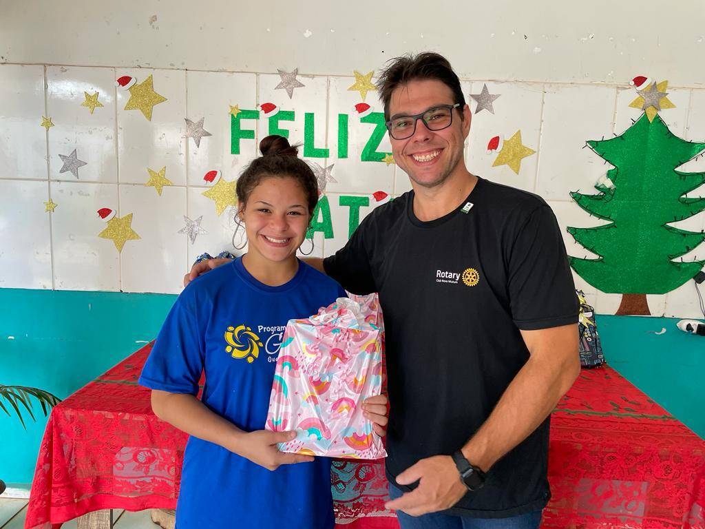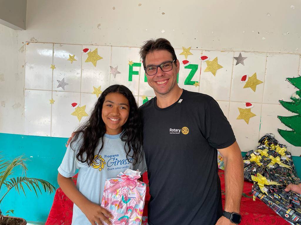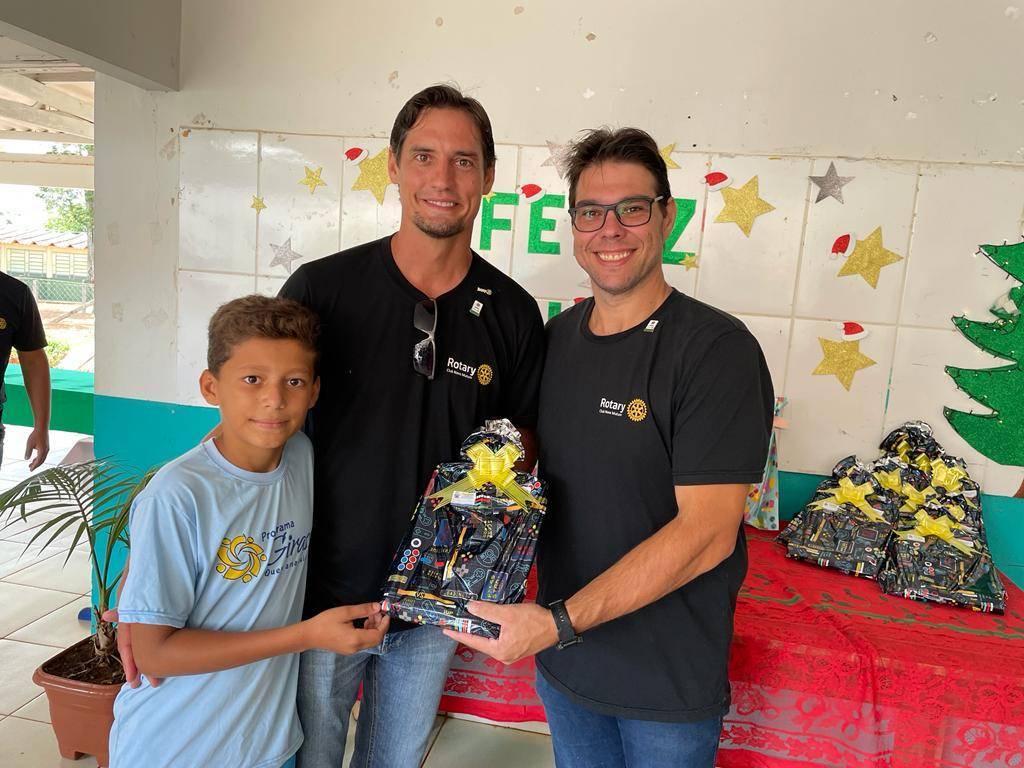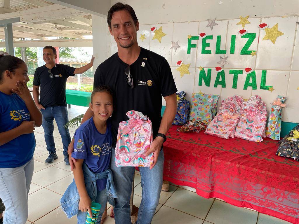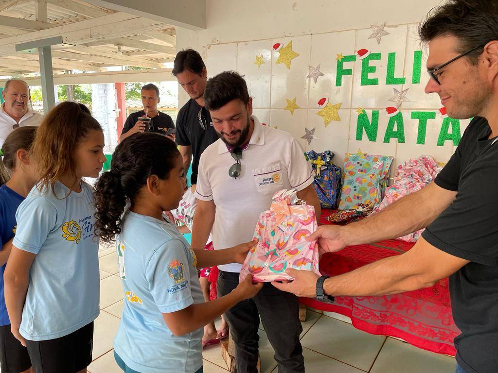 Nesta segunda 12 de dezembro o Governador Felício José esteve realizando a visita oficial ao Rotary Club de Nova Mutum, sendo recepcionado ainda no domingo final do dia, e já na segunda pode desfrutar de um delicioso café com companheirismo no Hotel Imperial, na sequencia os companheiros conduziram o Governador ao Programa Social Girassol da Comunidade Ranchão para entrega de Brinquedos e Material Escolar para à 79 crianças que lá estudam.