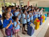 Mais um dos momentos emocionantes da visita foi a Orquestra Jovem de Nova Mutum e também ao Programa Assistencial Caica Marton Lucca que atende em torno de 400 crianças, onde o RC nova mutum atendeu com 150 kits de higiene.