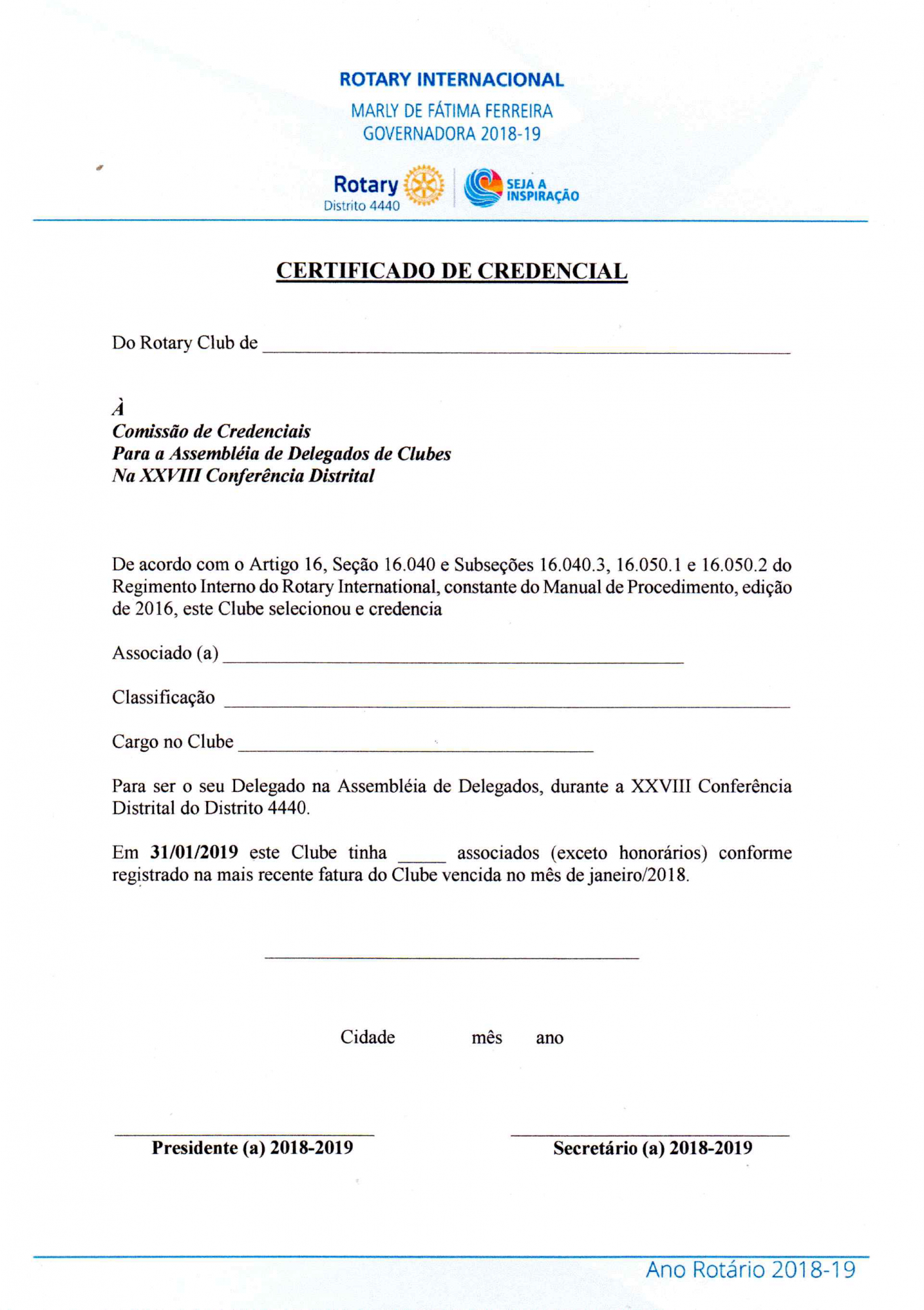 XXVII ASSEMBLEIA DISTRITAL ÁGUAS DO RIO PARAGUAI - CERTIFICADO DE CREDENCIAL
