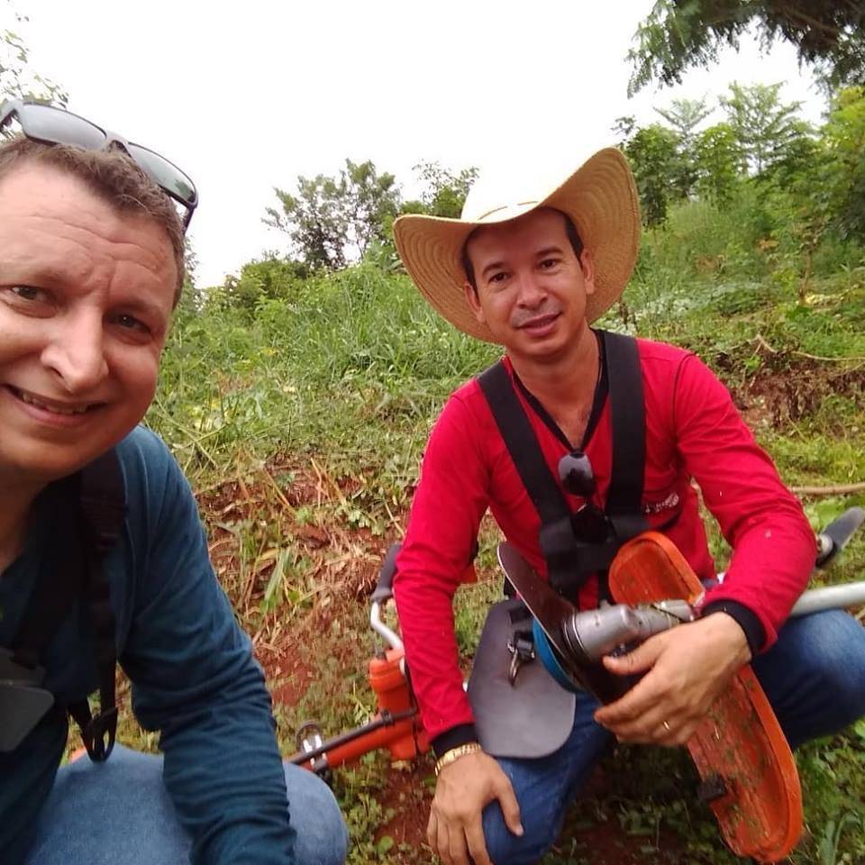 Erineu Delabenetti, coordenador de serviços do projeto ambiente e Cledsom Bianchini de Deus, presidente Rotary Tangará da Serra gestão 18/19, após mais um dia de trabalho no reflorestamento do corego Buritis. Hoje foi realizado serviços de limpezas e plantação de mais 50 mudas de árvores de espécie nativa da região. Ao terminar das atividades do dia, cledson proferiu as seguintes palavras de agradecimento: “Eu gostaria de agradecer a presença de cada rotariano, rotaractiano, interactiano, rotakidiano e voluntário que contribuiu nestes últimos dois finais de semana desse projeto. Fico orgulhoso em chama-los de companheiros, pois é sempre muito bom estar com vcs, e trabalhar ao lado de vocês é melhor ainda. Creio que mais essa etapa da missão foi cumprida, e com louvor por todos.