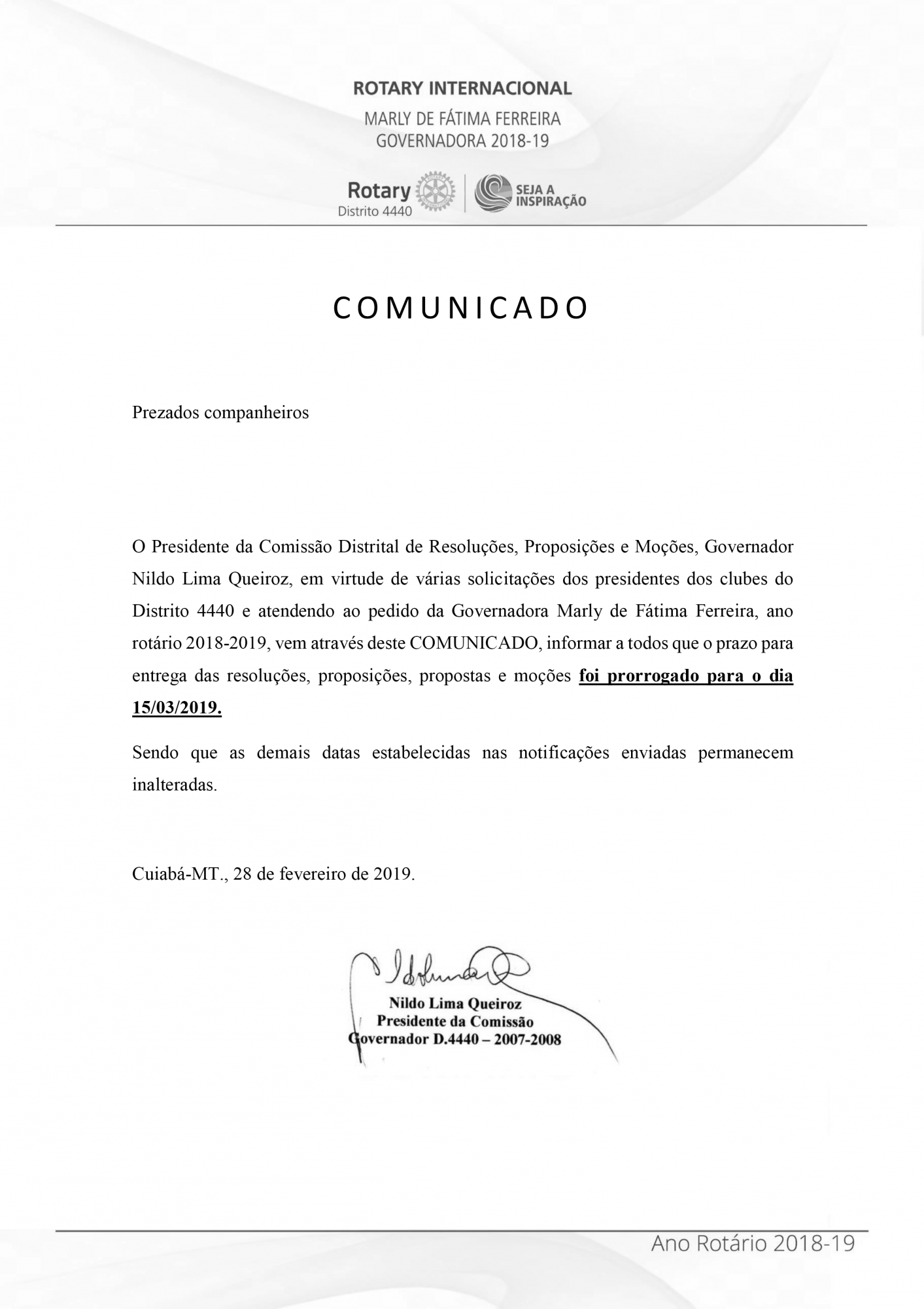 COMUNICADO- PRORROGAÇÃO DO PRAZO PARA ENTREGA DAS RESOLUÇÕES, PREPOSIÇÕES, PROPOSTAS E MOÇÕES