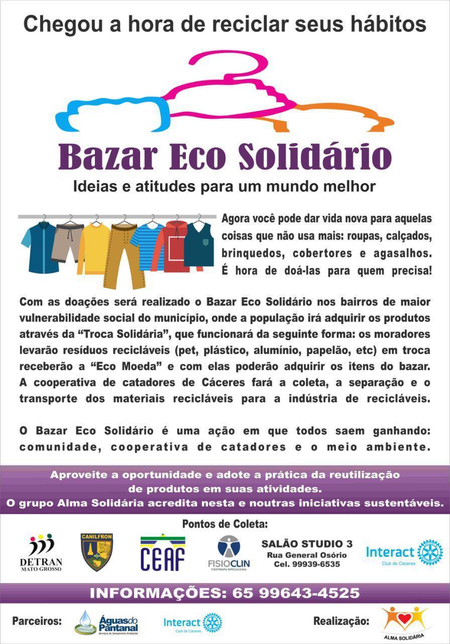 Pedimos sua ajuda para a doação das roupas que serão usadas no Bazar. Sabe aquela sua roupa que você nunca usa ou só usou uma vez? Ou mesmo aquelas roupas que não servem mais? Leve essas roupas para os locais de coleta. Com isso, ao invés da roupa estar só ocupando espaço no seu guarda-roupa, ela servirá para uma pessoa que não tem condições de comprar roupas novas.