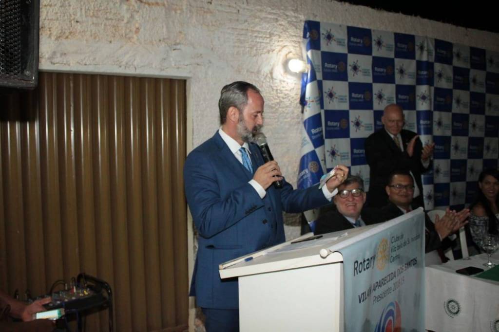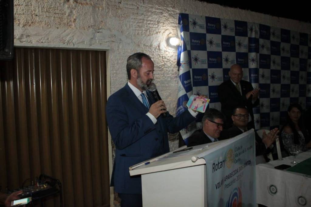 Seguiu-se agradecimentos, reconhecimentos e entrega de mimos aos presidentes e membros do CD ano rotário 2018-2019, do Rotary Club, pela presidente companheira Vilan Aparecida dos Santos e do Rotarct, companheiro Edcley pelos serviços prestados à comunidade vilabelense.
