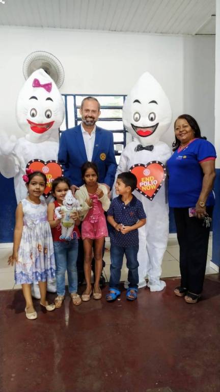 Na sequência, o grupo se dirigiu ao Ambulatório da Criança, sendo recebidos pela Secretária de Saúde, Silvana Maria de Souza, no qual as companheiras, através do uso de bonecos temáticos, motivam os pais a vacinarem os filhos contra a Poliomielite. Também visitaram o CEU, Centro de Especialidades Odontológicas, do projeto “Brasil Sorridente” e que faz atendimentos gratuitos na área de saúde bucal. Logo após o grupo se dirigiu a residência de uma adolescente que necessita melhorar sua locomoção e independência, para a qual foi consignada uma cadeira de rodas.