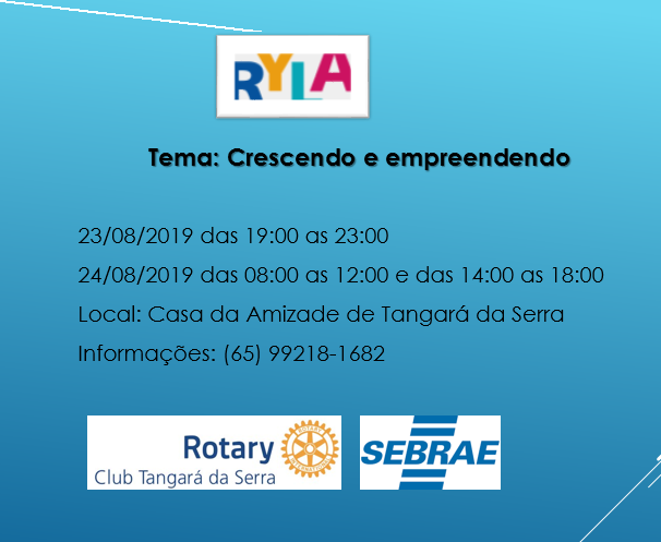 Local: Casa da Amizade de Tangará da Serra (Rua Rotary Internacional, 1440-W - Jd Santa Lúcia).