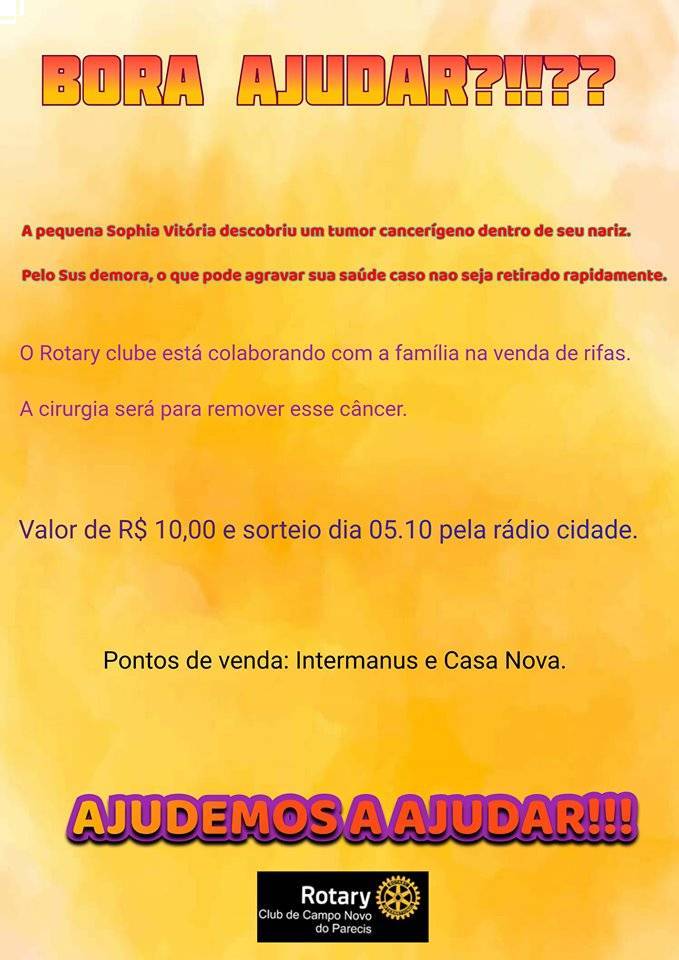 O Rotary Clube está colaborando com essa família para ajudar a vender rifas para custear as despesas da cirurgia.