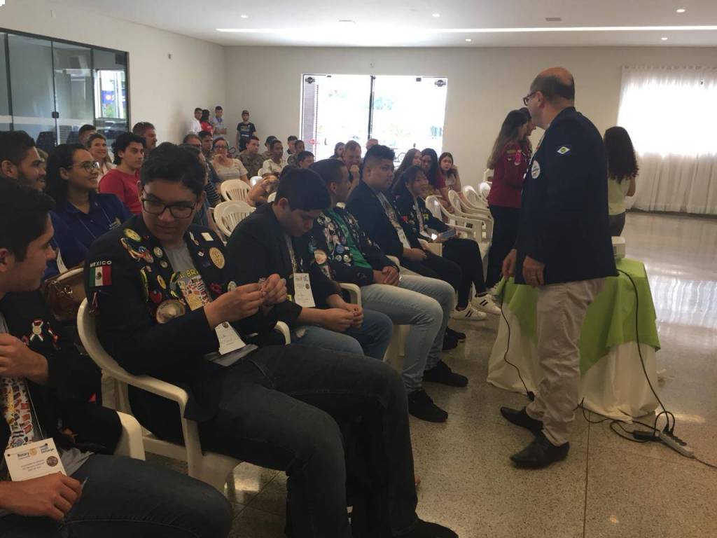 O jovem intercambista, Geovanny Dalagnol, recém retornado do México, fez uma apresentação da sua experiência naquele país. Segundo suas palavras, foi uma experiência ímpar em sua vida, ampliando sua visão de mundo com muitas influências positivas. Seguiu-se a apresentação bilíngue (portugês inglês) do intercambista e co-chairman, Bruno Gerolin, sobre as normas e regras que o intercambista inbound deve seguir.