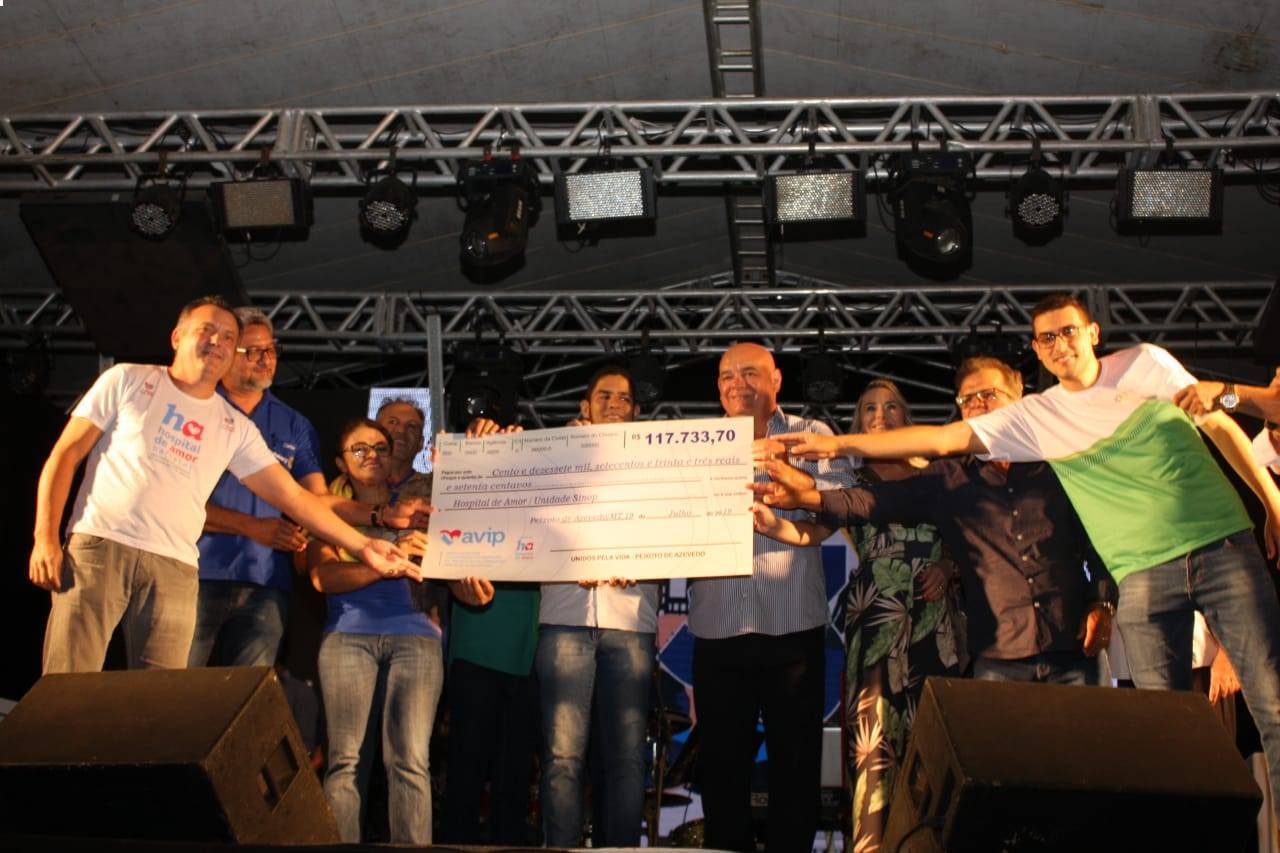 Entrega do cheque simbólico com valor de mais de R$ 117 mil para o Hospital do Amor