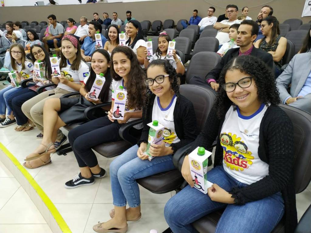 Durante a entrega da Moção de Aplauso os Rotakids de Sinop Tarumã presentes na Seção da Câmara Municipal de Sinop, entregaram um porta lacre do projeto lacre solidário a todos os vereadores como forma de agradecimento e divulgação do projeto lacre solidário.